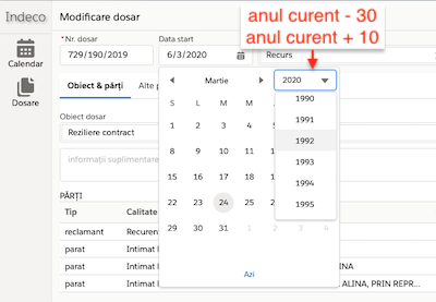 - controlul de selectare dată calendaristică - extins intervalul de ani