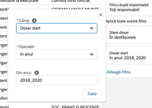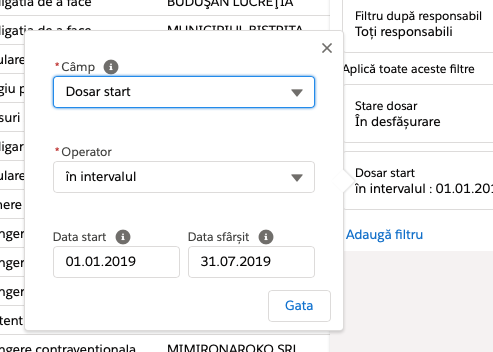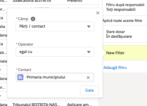 Ex: pentru câmpurile: Părți - reclamant / contact, Părți - pârât / contact, Părți / contact (reclamant + pârăt).