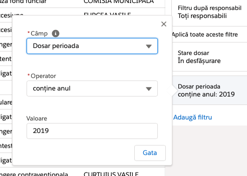 | După selectarea unei entități din listă (anulare selecției se face cu butonul x) | ![]() |
